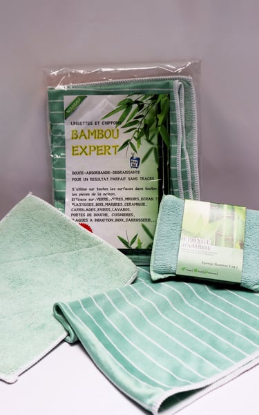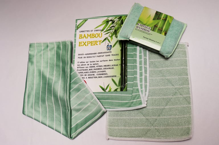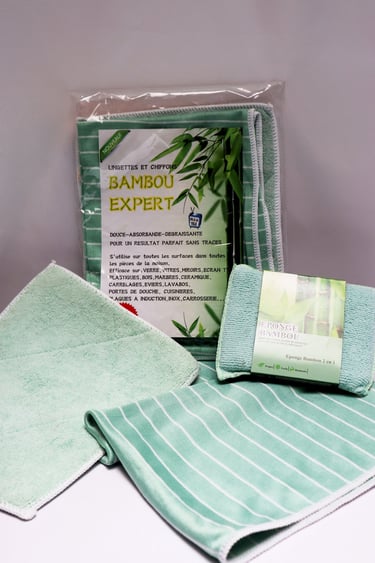 Ultra absorbants, dégraissants et sans traces, ces chiffons en bambou sont idéals pour toutes les surfaces: vitres, inox, écrans, carrelages, bois, etc. Ils nettoient en profondeur tout en douceur. L’éponge 2 en 1 complète l’ensemble pour un nettoyage optimal.