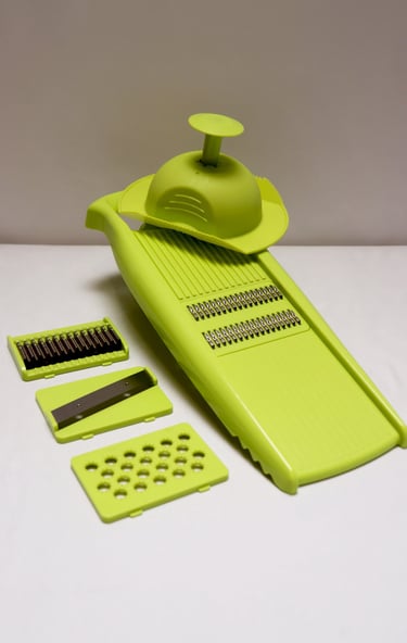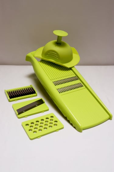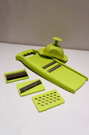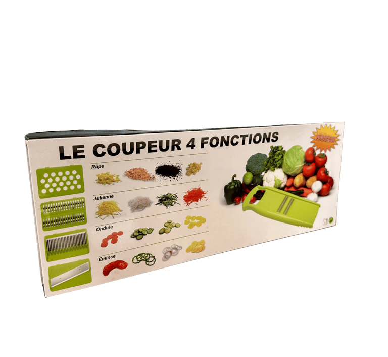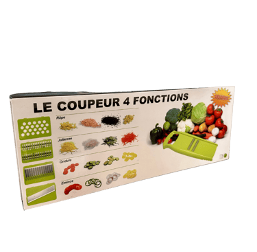 Cette mandoline manuelle est fournie avec 4 embouts interchangeables pour râper, trancher, émincer ou découper en julienne. Elle est équipée d’un poussoir de sécurité. Elle s’utilise facilement au quotidien pour préparer vos fruits et légumes.