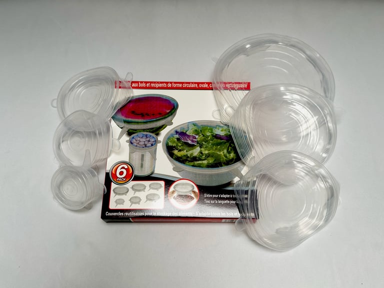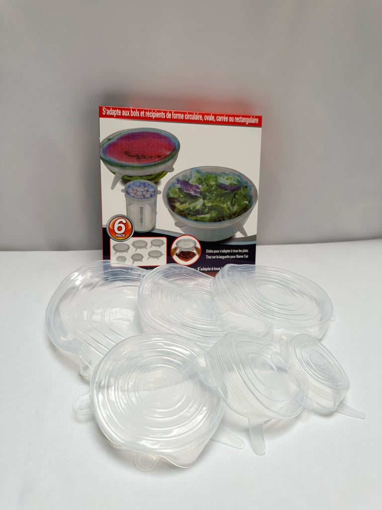 Ces couvercles en silicone réutilisables s'adaptent à une grande variété de contenants : Bols, saladiers, casseroles, plats, moules ou ramequins. Grâce à leur matière extensible et leur élasticité, ils assurent une fermeture hermétique qui prolonge la fraîcheur des aliments tout en évitant l’usage de film plastique jetable. Le lot contient 6 tailles différentes pour s’adapter à vos besoins.