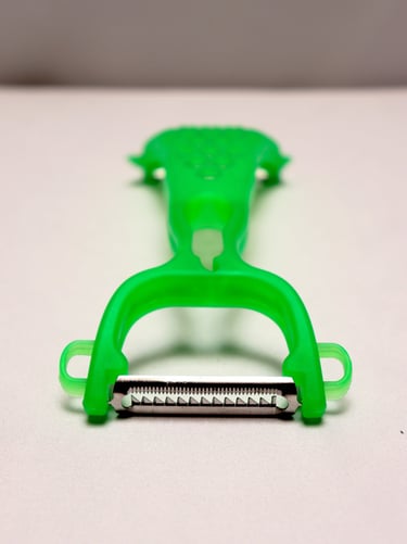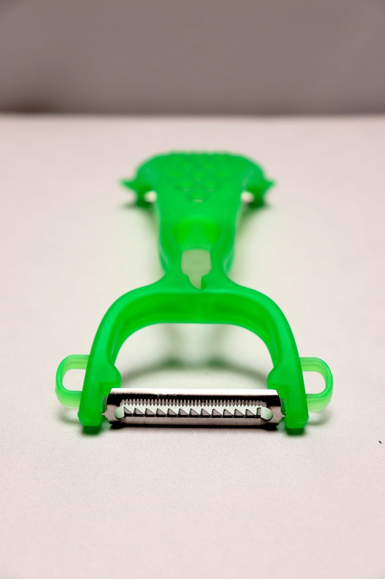 Cet ustensile polyvalent permet de réaliser quatre types de découpes : épluchage classique, julienne fine, découpe décorative et râpe. Parfait pour varier les textures sur vos fruits et légumes en un seul geste.
