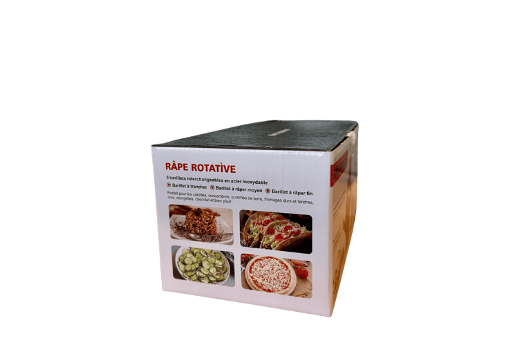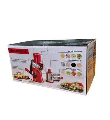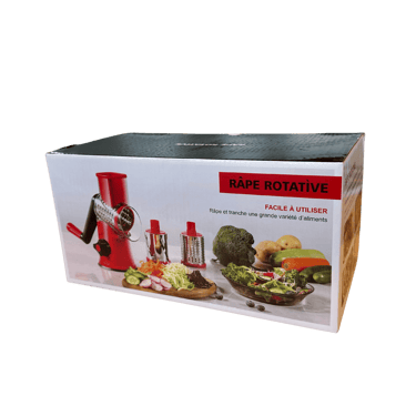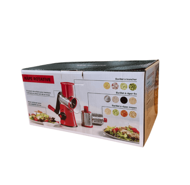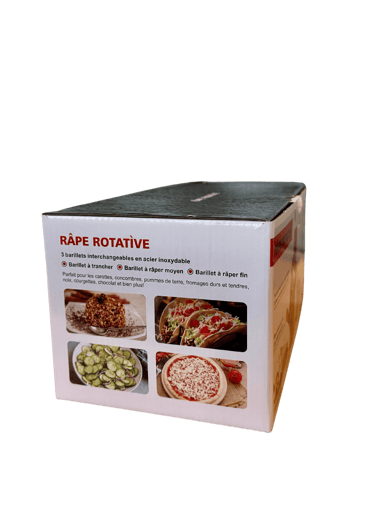Préparez vos ingrédients en un tour de main avec cette râpe rotative manuelle. Grâce à sa manivelle et ses trois rouleaux interchangeables, vous pouvez râper, trancher ou émincer vos légumes, fromages, fruits secs, chocolat et plus encore. Stable grâce à sa base à ventouse, elle s’utilise facilement sur toute surface lisse.