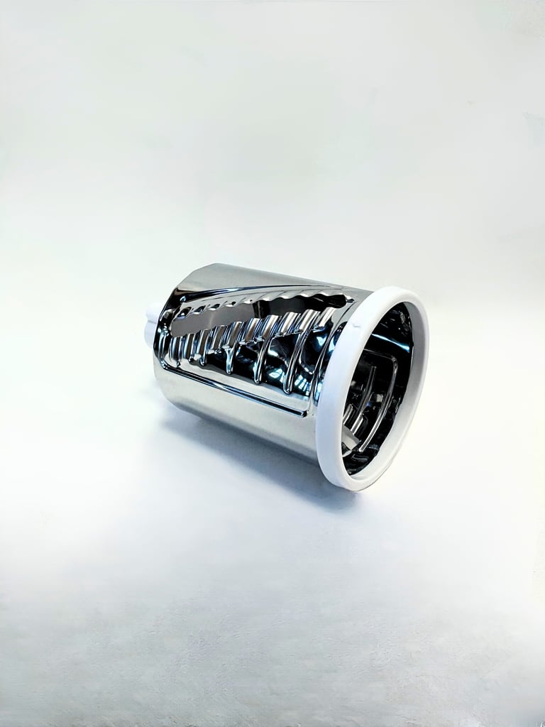 Ce rouleau gaufrette est un accessoire compatible avec la râpe rotative manuelle à 3 rouleaux. Il permet de réaliser des tranches gaufrées régulières, idéales pour préparer facilement des chips maison croustillantes, mais aussi des garnitures originales et visuellement gourmandes.