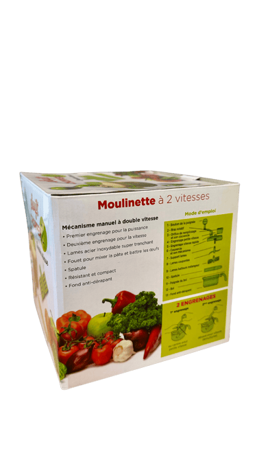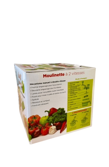 Cette moulinette manuelle est idéale pour hacher, mixer ou émulsionner vos aliments facilement. Elle est équipée de 2 vitesses au choix, d’un système à manivelle ergonomique et de plusieurs accessoires. Pratique et rapide, elle est parfaite pour une cuisine du quotidien.