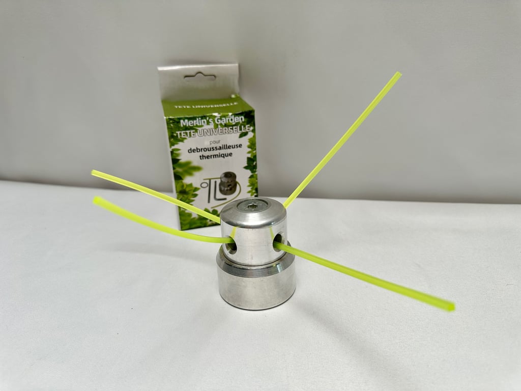 Cette tête universelle en aluminium s’adapte aux débroussailleuses thermiques. Elle permet de couper facilement les herbes épaisses et les broussailles. Le kit inclut les accessoires de montage.